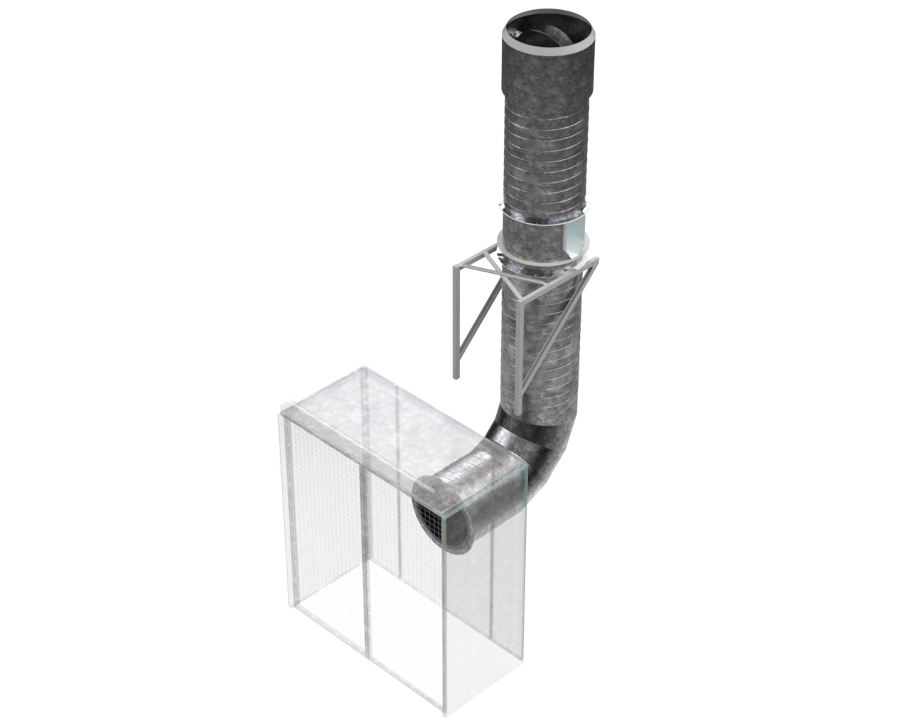 Comprehensive ducting kit to run horizontally from the top outlet of the extract chamber and then through a wall and up the outside wall to termination. Run includes 6 Mtr ducting, interconnecting fittings, 1 QTY 90 deg bends, 1 QTY gallows bracket set for securing ducting to exterior wall and termination with a weather cowl.